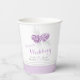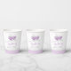 Personalize these wedding party paper cups with your own couple's full names. Purple, grey and white cups ideal for winter wedding event. Other matching items are available. © Original pine cone art hand drawing and design by Sarah Trett for www.mylittleedenweddings.com