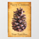 A vintage-look image of a pine cone superimposed on an old paper background. Text reading "Merry Christmas" also appears. Add your own additional text.