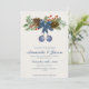 Capture the essence of nature's beauty with the intricate pine cone and vibrant red berries illustrations that adorn this invitation. The rich, earthy tones combined with the festive red accents evoke a sense of coziness and romance, setting the tone for a heartwarming celebration.