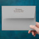 Silver grey envelope with brown and silver pine cone pattern design inside of silver and brown to compliment our rustic pine cone silhouette wedding invitation set.