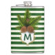 Pine Cones and Green Stripes Monogrammed Flask