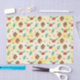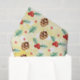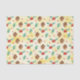 Tissue paper with a cute pattern featuring pine cones and holly on a yellow watercolor background with little white circles scattered around.