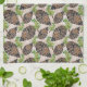 This kitchen dish towel features a repeating pattern of pine cones and pine branches.