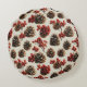 Pine Cones and Red Berries Winter Pattern Round Pillow