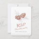 RSVP features two pine cones / confer cones with needle foliage sketched in pencil and coloured in grey and brown on a white background. Great for co-coordinating with brown and grey weddings or for nature themed winter country rustic themed wedding. Part of the pine cone drawing wedding set. Edit this RSVP invitation with your names, dates and wording. Unique drawing and design by Sarah Trett.