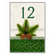 Elégante carte de numéro de table de réception de style plat faite dans un thème hivernal, avec arrière - plan d'ivoire antique avec des graphiques de ruban de dentelle, pinède avec cônes de pin et un or sur le design vert, à travers le fond. Le numéro de table vert personnalisé est prêt à être personnalisé pour chaque table à la réception. Des produits mariages correspondants sont disponibles.