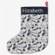 Christmas stocking personalized with a name. Designed with a beautiful pattern. Pine cones, feathers, pine needles and berry sprigs. Rustic watercolor design.