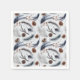 Paper napkins with a beautiful pattern. Pine cones, feathers, pine needles and berry sprigs. Rustic watercolor design.