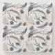 A stone coaster with a beautiful pattern. Pine cones, feathers, pine needles and berry sprigs. Rustic watercolor design.