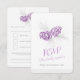 RSVP features two pine cones / confer cones with needle foliage sketched in pencil and coloured in grey and lilac purple on a white background. Great for co-coordinating with brown and grey weddings or for nature themed winter country rustic themed wedding. Part of the pine cone drawing wedding set. Edit this RSVP invitation with your names, dates and wording. Unique drawing and design by Sarah Trett.