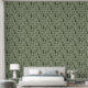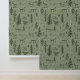 Pine Deer Lake Life - sage green woodland pattern. Wallpaper
