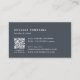Rustic elegant business card design features a forest of pine trees in muted shades of hunter and forest green, with two lines of custom text for your business name and/or your name and business description, in a chic combo of block and italic lettering. Add your full contact information to the reverse side in white on dusty blue, along with a customizable QR code.