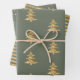 Pine Green Gold Christmas Tree Stripes Sparkle Wrapping Paper Sheet