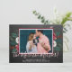 Photo Christmas Pregnancy Announcement Cards. Expecting parents! Modern white-red hand lettered typography script "the More the Merrier!" card to share your happy news with family and friends in the holiday season. Features watercolor burgundy white floral pine branches red berries with holly arrangement on chalkboard background. Inside the frame you can change the photo for your own. You can personalize the design by replacing the texts and horizontal photo. #3347 If you need help or matching items, please contact to me!