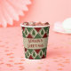 Show your love for the holidays with this pine tree paper cup. Featuring cozy holiday colours of green, red, brown and tan. The red pattern (behind the pine tree design) can be customized by changing the graphic rectangle colour. Personalize by changing or removing the text. I created this pattern from an image in my original acrylic painting.