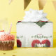 A beautiful image which features a message of; "with love on Christmas" and pairs with a faded winter forest scene and a large heart made with pine trees and red foliage to create a romantic and elegant Christmas wrapping paper.