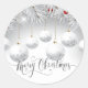 Pine Tree Branches White Balls Merry Christmas Classic Round Sticker