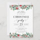 Invitation à la fête de Noël mettant en vedette l'aquarelle verdure hivernale entrelacée de branches de pins verts sauge et décorée d'ornements rouges. Cette élégante invitation thématique "Mangez, buvez et soyez joyeux" est parfaite pour vos festivités d'hiver.