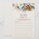 Pine Tree Floral Who Am I Bridal Shower Game Stationery