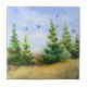 Pine Tree Tile Landscape, pines, hills, crows sum,