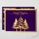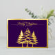 Pine trees and Merry Christmas in Purple, Gold Foil Holiday Card