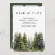Amaze your guests with this forest theme save the date featuring beautiful pine trees and modern typography with QR code for wedding website. Simply add your event details on this easy-to-use template and adorn this card with your favourite photos to make it a one-of-a-kind save the date card.