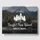 Allow your guests to leave a note and share memories about their stay in your vacation rental. This design features a hand drawn white pine trees and a photo background you can replace with your own image on the front. The back features editable text to leave a personalized message and a light wood background. Edit this template to easily make this design your own and add a personal and welcoming touch to your guest house.