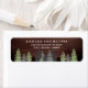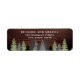 Rustic return address labels featuring beautiful pine trees with modern typography against a barn wood background.