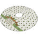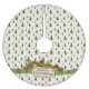 Pretty Pine Trees with Merry Christmas Ribbon Tree skirt is the perfect way to finish of your Christmas tree and set the stage for your gifts this year and for years to come. A cream colour background with a pattern of green pine trees features a beautiful green and gold ribbon, centre tag reading Merry Christmas. The tag is adorned with pine branches, pine cones and leaves.