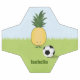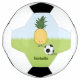 A soccer ball with a smiling pineapple character that's standing with a soccer ball. The design also has a customizable name.