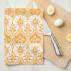 A pineapple damask in bold orange and white. Groovy colours for a retro take on a classic design. The abstracted pineapple in this type of damask represents hospitality and welcoming.