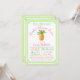 Pineapple bridal shower invitation with pretty pineapple on a fresh lime green and white background. This luau bridal shower invitation is easily customized for your event by simply adding your details in the font style and wording of your choice. You can also add a background colour and remove or resize the pineapple on the back. This is a printed design with no real foil, glitter, etc.