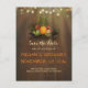 Tropical fruits, pineapple, palm leaves and beach string lights save the date postcards