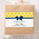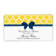 Stylish Moroccan Quatrefoil Trellis Lattice Pattern, Navy Blue Satin Look Bow Ribbon Party Water Bottle Label / Wine Bottle Label