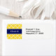 Pineapple Yellow and White Fancy Quatrefoil Pattern, Navy Blue Ribbon Name Monogram Label