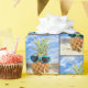 Heart sunglasses on whole pineapple in sand with seashell and starfish.