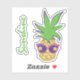 This contoured sticker set features a cute graphic image of a pineapple wearing retro cat style sunglasses in pink. There is a separate sticker with easy to personalize template text.