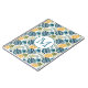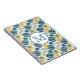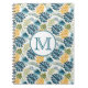 Summer and tropical golden pineapples on a modern blue and green colored palm tree leaves, foliage pattern. White background. Personalize and add your monogram letter inside the frame.