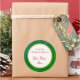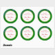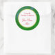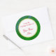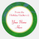 A custom baking, canning or craft sticker with red script letters and a holiday green background with a blue and green pine pattern created from a vintage etching. Customize it to change fonts, move elements and more, even save your personal design for later.