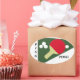 A cool design featuring a red ping pong paddle and ping pong balls on a green background.