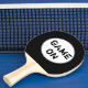 BEST SELLER! Ping pong paddle shown in black with text: Game On.