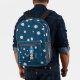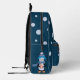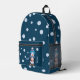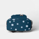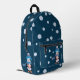Un joli sac à dos bleu pour les enfants ou les adolescents avec des pois bleu clair et un manchot sirotant une tasse de cacao chaud. Personnalisez-le avec un nom ou un monogramme. © ArianeC Illustrations-Tous droits réservés