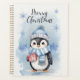 Une charmante illustration hivernale d'un adorable petit manchot portant un casquette rayé bleu et une écharpe, apportant une ambiance cosy et festive. Les flocons de neige doux et les tons bleus doux de l'arrière - plan créent une atmosphère hivernale magique. Parfait pour les cartes de Noël, les affiches, les autocollants et l'artisanat saisonnier !