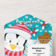 Une carte unique, attrayante et économique, le tout dans une invitation avec la déchirure de la recette carte pour les amis et la famille. Doté de manchots de dessins animés lumineux et colorés portant des casquettes de Noël ; un biscuit à puce au chocolat; biscuits ronds en pain d'épices avec frottement et conception holistique; tous sont dressés contre un arrière - plan rempli de feuilles sacrés bleus, verts, rouges et bronzés, de rayures de neige et de chevrons. Personnalisez le texte modèle et obtenez l'esprit de Noël rouler.