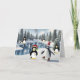 Pingouin Noël sur la carte de vacances sur glace
