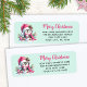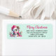 Ces étiquettes d'adresse de retour rose et vert menthe uniques comportent le "Joyeux Noël" en caractères décontractés et un mignon manchot en chapeau de Père Noël rose. Le modèle vous permet de taper facilement votre adresse avant de commander.