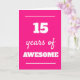 Funny pink 15 years of awesome card, which you can easily personalize the inside card message if wanted. A great 15th birthday card for her.