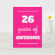 Modern pink 26 years of awesome birthday card for her 26th birthday, which you can easily personalize the inside card message if wanted.