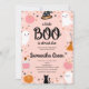 Welcome your little one in spooky style with our Pink A Little Boo Baby Shower Invitation! Featuring playful ghosts, a mix of pink and orange pumpkins, a bubbling pink potion, a witch broomstick, and a witch hat, all set against a soft pink background, this charming design is perfect for a Halloween-themed baby shower. BBS489