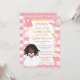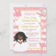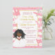 Cute African American girl pink holy first communion design with pink striped background and gold foil confetti. Graphics by Mujka and KlouiseDigiArt on Etsy.